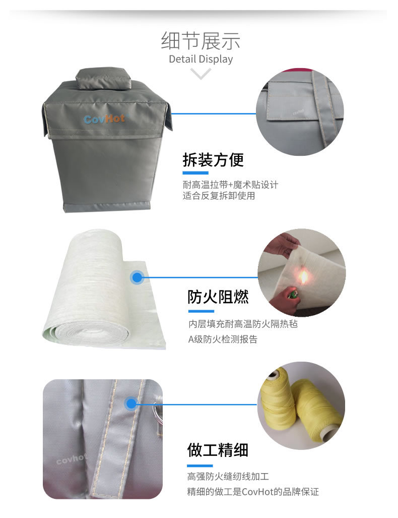 提示:點(diǎn)擊圖片可以放大 上一個(gè)產(chǎn)品:柔性可拆卸閥門保溫衣 執(zhí)行器儀表保溫套 方便設(shè)備檢修 下一個(gè)產(chǎn)品:COVHOT柔性可拆卸閥門保溫衣 方便設(shè)備檢修維護(hù) 隔熱防火防水