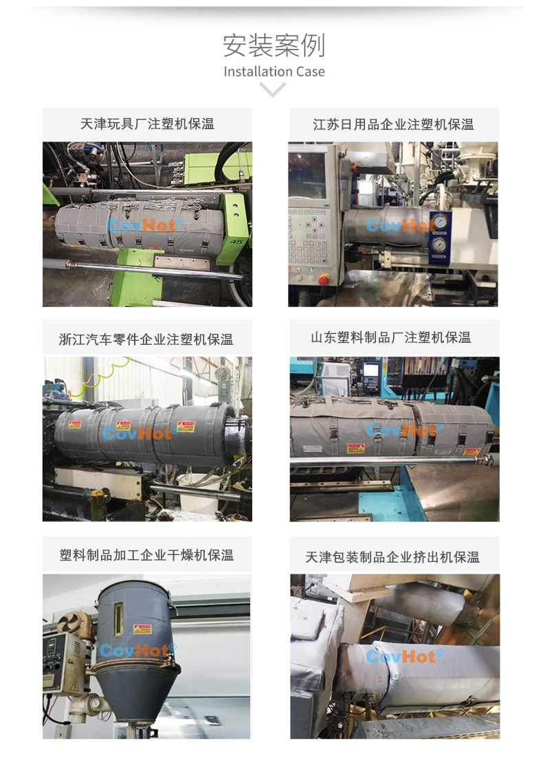 注塑機保溫隔熱工作,選用注塑機節(jié)能保溫罩能夠有限抑制注塑機表面熱量的損耗,從而減少注塑機達到指定溫度而頻繁啟動。不僅能夠降低車間的整體工作環(huán)境,還能夠起到節(jié)能降耗的效果。